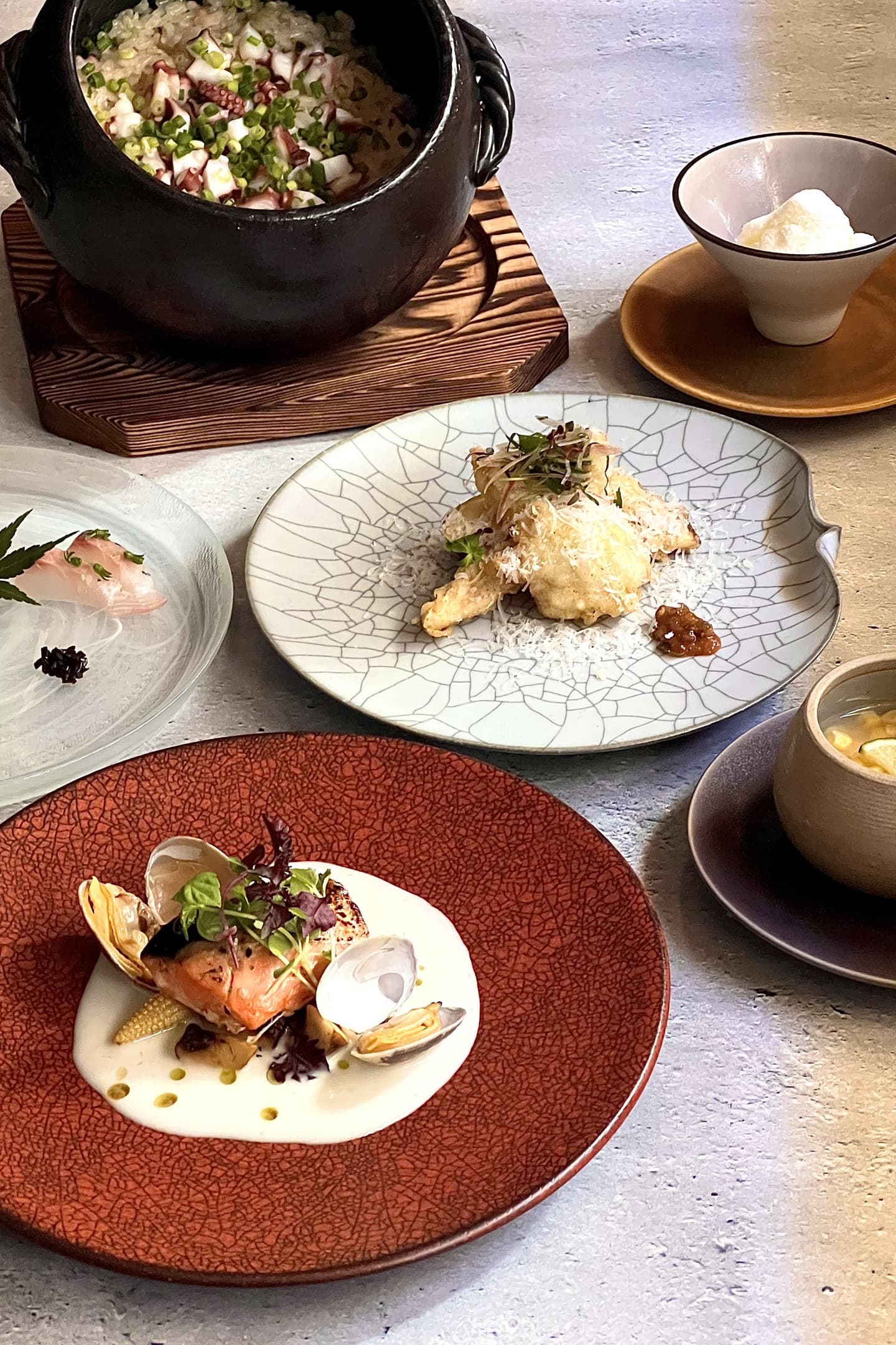 魚料理やお肉料理もついている7皿7品の満足プラン。